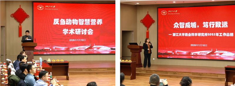 2026年1月10日下午,由浙江大学奶业科学研究所、浙江省畜牧兽医学会草食动物与草业分会、国家奶牛产业技术体系联合主办的“反刍动物智慧营养学术研讨会暨2025年奶科所年会”在浙江大学动物科学学院梓荣报告厅举行。会议聚焦新质生产力在反刍动物营养领域的创新应用,围绕精准营养调控、绿色减排技术、数据驱动决策等前沿议题展开深入交流,旨在推动营养技术与产业实践的深度融合,为行业向精准化、绿色化、高效化方向转型贡献力量。